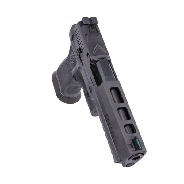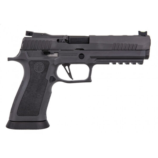 A P320 X-Five Legion é a melhor pistola para atiradores sérios. O peso foi aumentado para 1kg para o inovador grip modular TXG tungsten-infused. Este novo produto é o primeiro deste tipo a indústria de armas com material em aço e armação de polímero, reduzindo o recuo em 50%. O gatilho da XFive Legion é até 30% mais leve com o novo gatilho esqueletizado, que aumenta a velocidade de disparo e precisão. O sistema de recuo foi aprimorado para usar uma haste de aço e uma mola 14lb 1911-style, com uma mola 12lb inclusa. O design de acabamento Legion Gray vem padronizado, assim como a marca Legion nas miras e em todas as três da Henning Group basepad de alumínio anodizado.